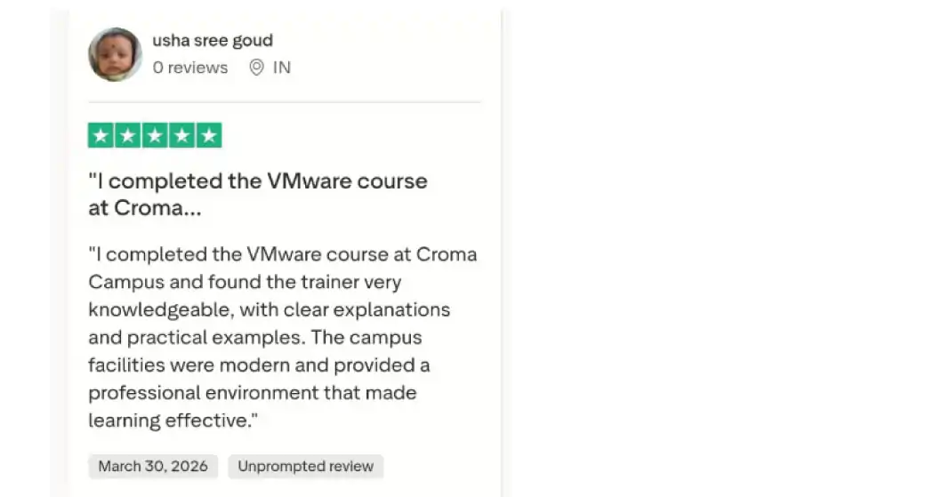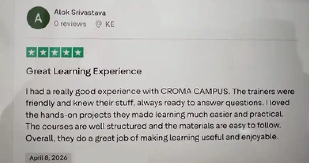 Our Croma Campus Reviews are the voices of our ex-students. We here provide top-notch IT training ways in which our students share their life-changing learning experiences. These testimonials will help you understand the influence of Croma Campus on the professional advancement of our students. We provide quality IT training along with job placement assistance. Along with it, we have industry-level trainers who work in MNCs. These points distinguish us from the rest of the IT training institutes.