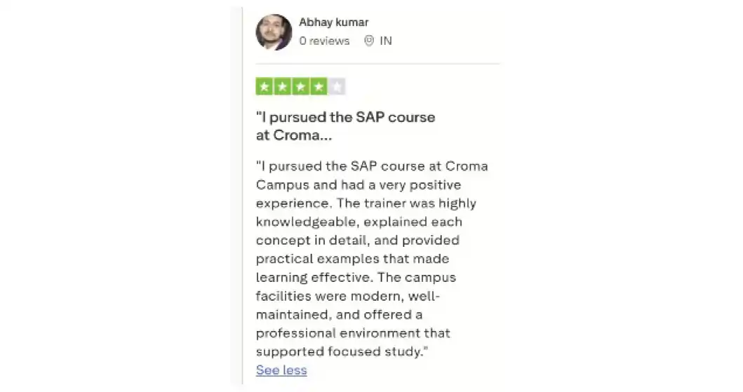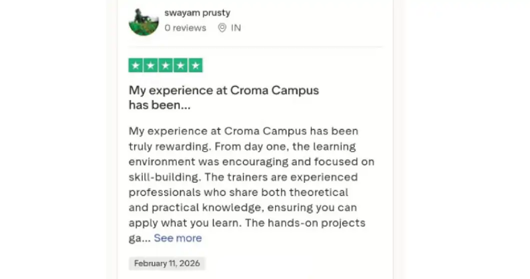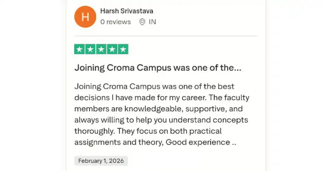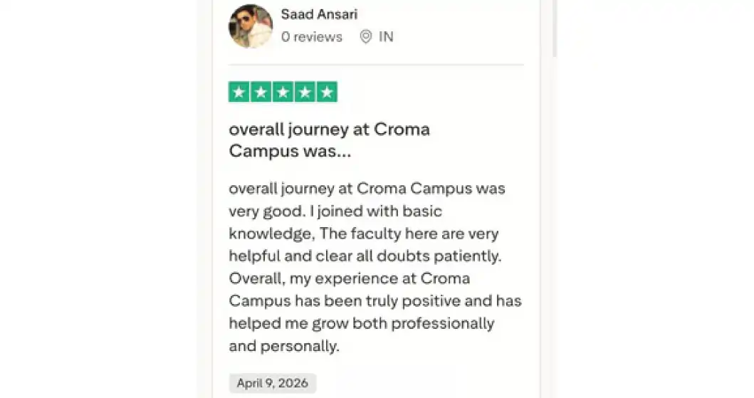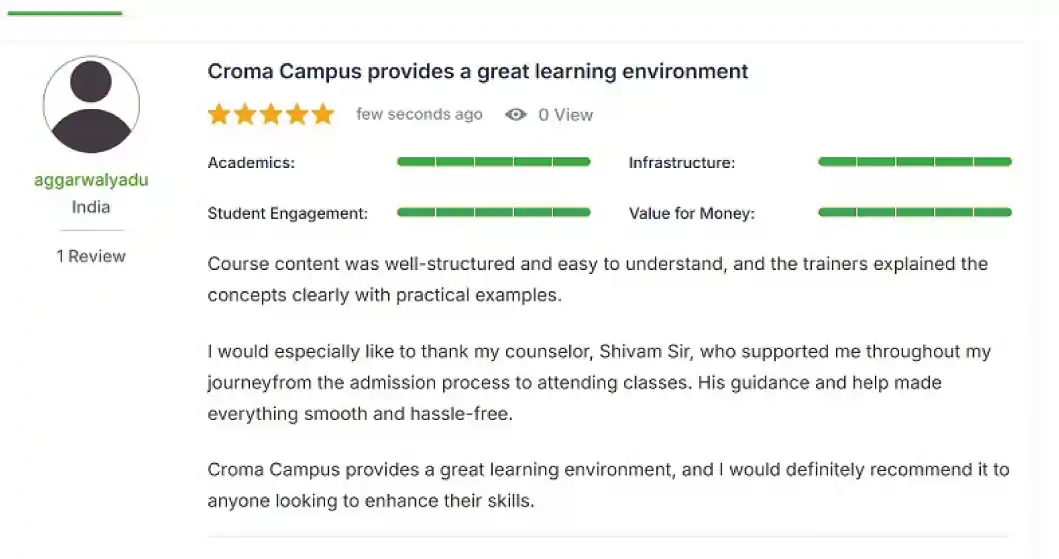 In our Croma Campus Student Online Reviews section, we proudly present the valuable feedback of our esteemed students. Discover an authentic and unfiltered collection of reviews that provide insights into the experiences and perspectives of our former students.